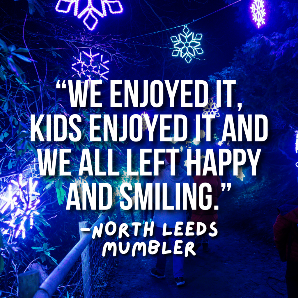 We design our trails with all ages, backgrounds and abilities in mind, to ensure our trail can be enjoyed by all. Our illuminations are the perfect, inclusive way to enjoy the festive season with the whole family. Whether you’re with family, mates, colleagues or a big group, it’s a great trip out for the whole gang!